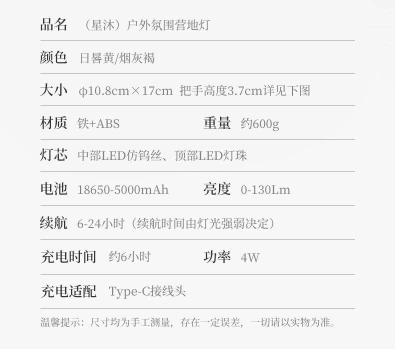 商品名称:【专用链接,仅限兑换礼品下单】Naturehike挪客星沐户外氛围营地灯