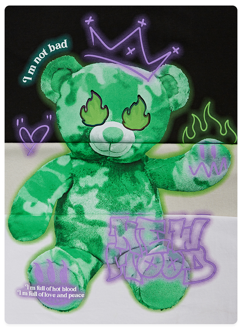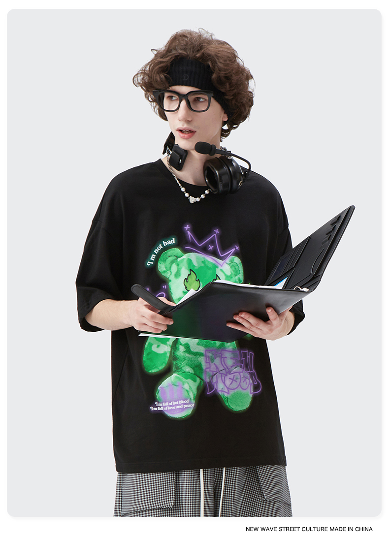 【膨胀】潮牌短T恤 绿色小熊-黑(码数请留言神灯)