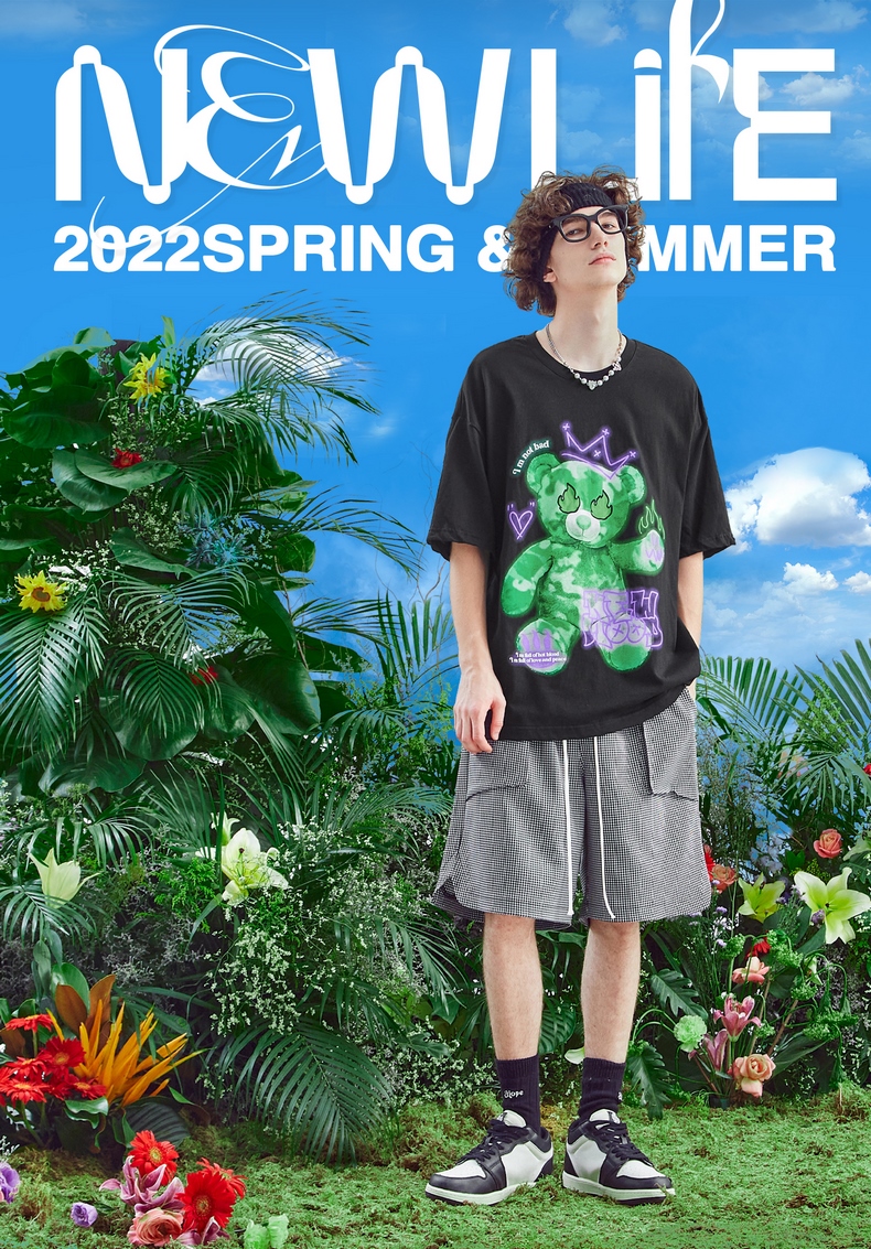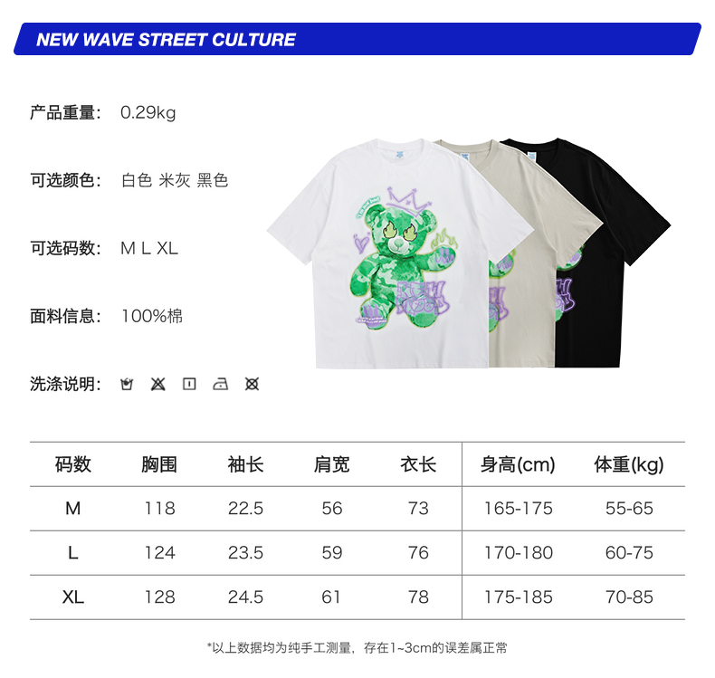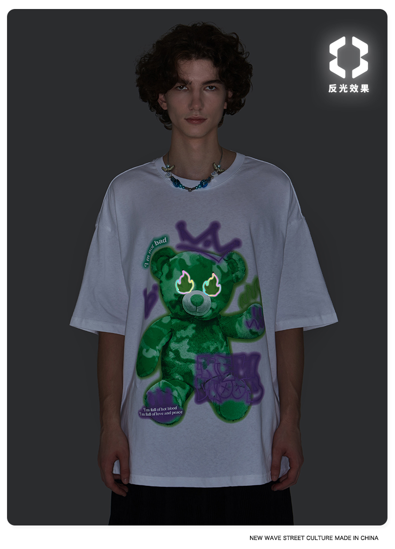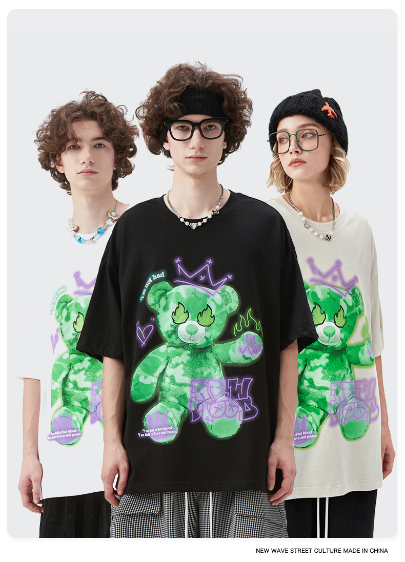 商品名称:【膨胀】潮牌短T恤 绿色小熊-白(码数请留言神灯)