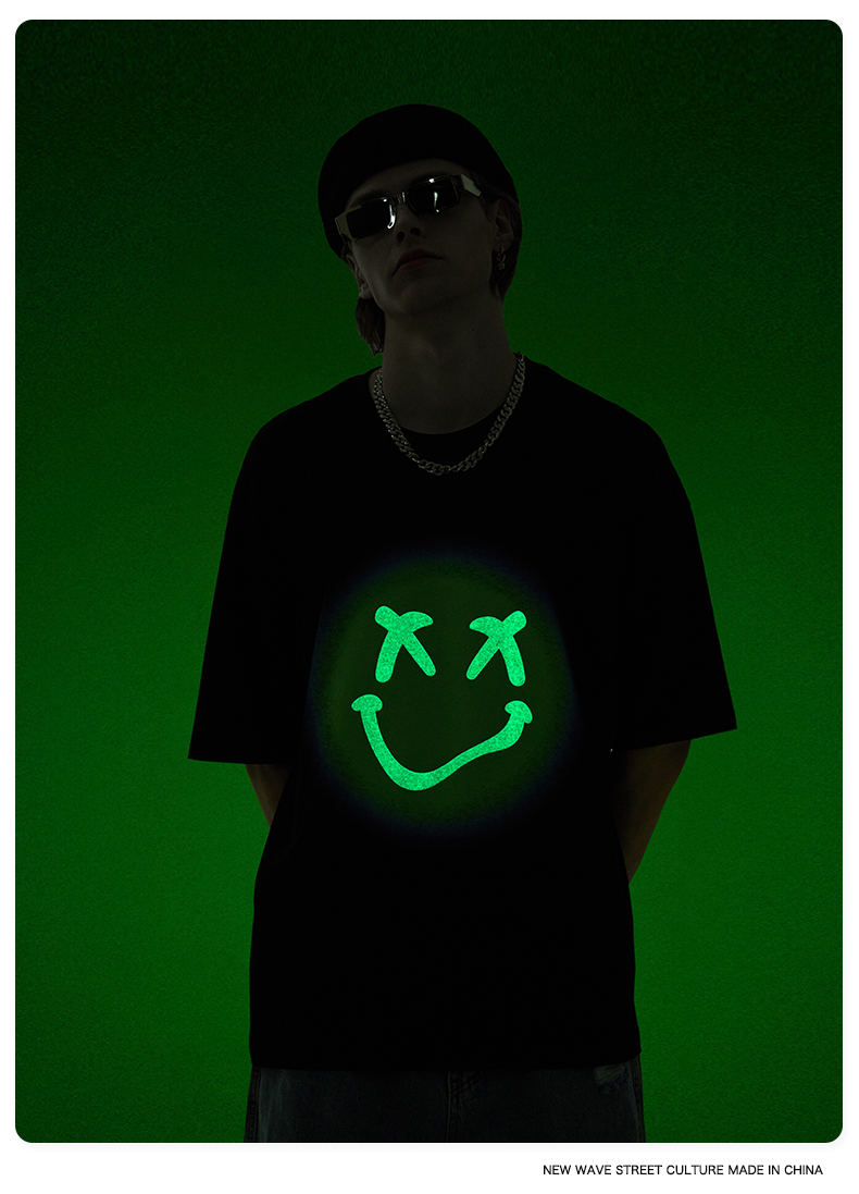 商品名称:【膨胀】潮牌短T恤 笑脸-黑(码数请留言神灯)