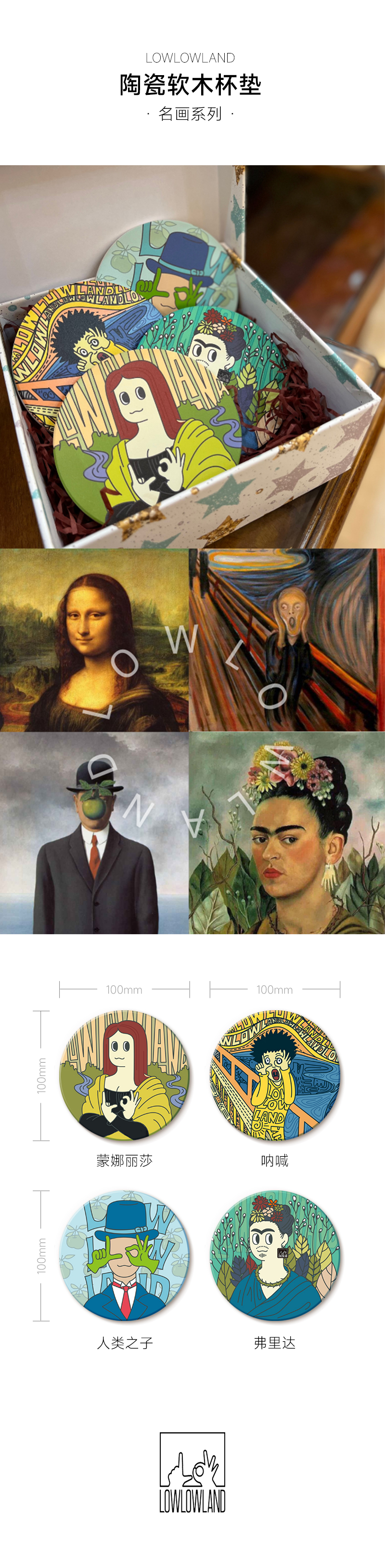 商品名称:【LOWLOWLAND】陶瓷软木杯垫-名画系列(款式请留言神灯)